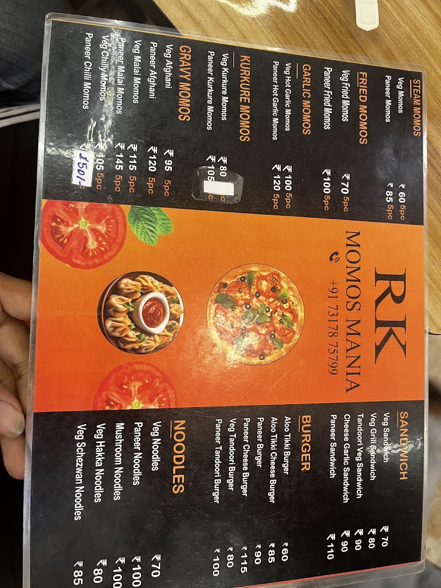 RK Momo Mania specializes in an array of delectable momos, offering varieties like Veg Kurkure Momos and Paneer Momos, with prices starting at just ₹60. If you're in the mood for sandwiches, their selections from Veg Grill to Paneer Sandwiches are both affordable and scrumptious, ranging from ₹70 to ₹110.